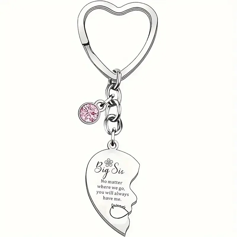 Big Sis Little Sis Heart Keychain Set, Matching Sister Keyrings with Ring Buckle, Decorative Stainless Steel Key Chains, Birthday Gift Theme with Alphabets & Love Elements, 2pcs Set, Letter Theme