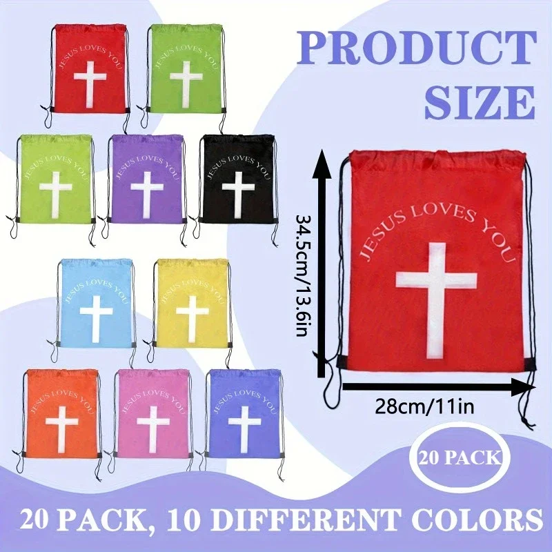 Jesus Loves You Drawstring Backpacks - Durable, Polyester, Ideal for Christian Gifts