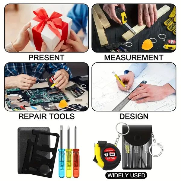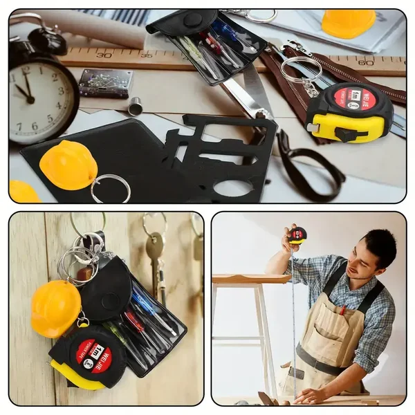 8 pcs Mini Tape Measure Screwdriver Multitool Pen Credit Card Helmet Keychains Bulk Father Gift for Men Party Favor (Rich)