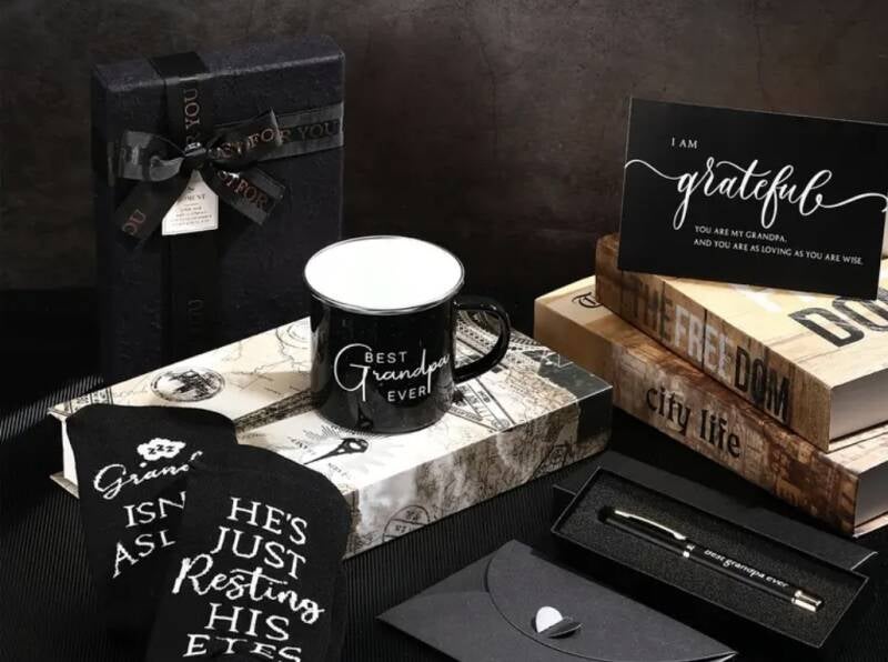 6pcs Grandpa Gifts Set Father Day Best Grandpa Gifts 12oz Enamel Mug Socks Ballpoint Pen with Pen Box Greeting Card Envelope for Father Grandpa Birthday Retirement Gift (Grandpa)