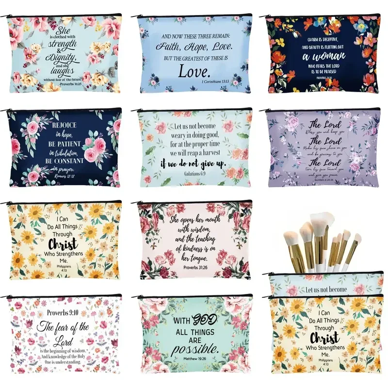 10pcs Christian Makeup Bible Pencil Bag Set - Inspirational Religious Accessories with Flower Inside Design - Perfect for, Church, Birthday, and Shower Gifts for Women and Adults