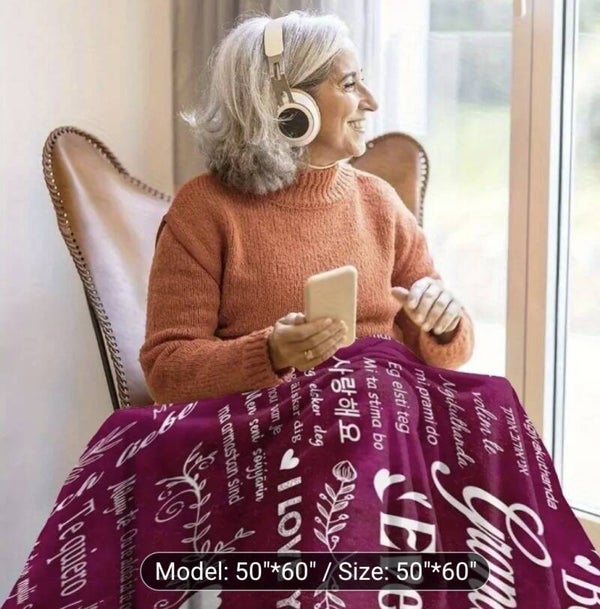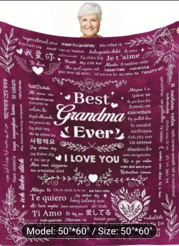 Multilingual Love Blanket - International Blessings for Grandma - Best Grandma Ever, 50"*60" - Super-Soft Polyester Flannel with Heartfelt Messages in Various Languages, All Seasons Use, Grandma Gift|Vintage Style Blanket|Polyester Fabric, Grandma Gifts