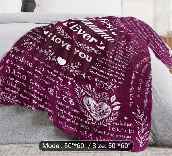 Multilingual Love Blanket - International Blessings for Grandma - 'Best Grandma Ever' (130x 150cm)'