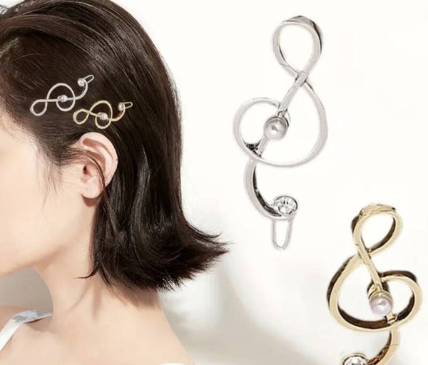 2pcs Women'S Fashion Musical Note Hair Clips, Side Bangs Barrettes, Alloy with Rhinestone and Imitation Pearls, Elegant Minimalist Style, Hair Accessories