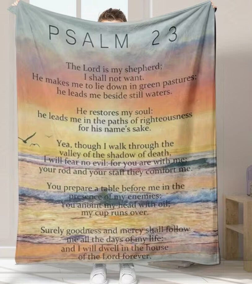 PSALM 23 Flannel Blanket - Low Allergen Fabric, Digital Print, All-Season Comfort, Perfect for Bed, Sofa, Camping, Travel, Car, and Room Decor, Ideal Gift for Birthdays, Christmas, New Year, Allseason Comfort|Religious Text Design|Soft